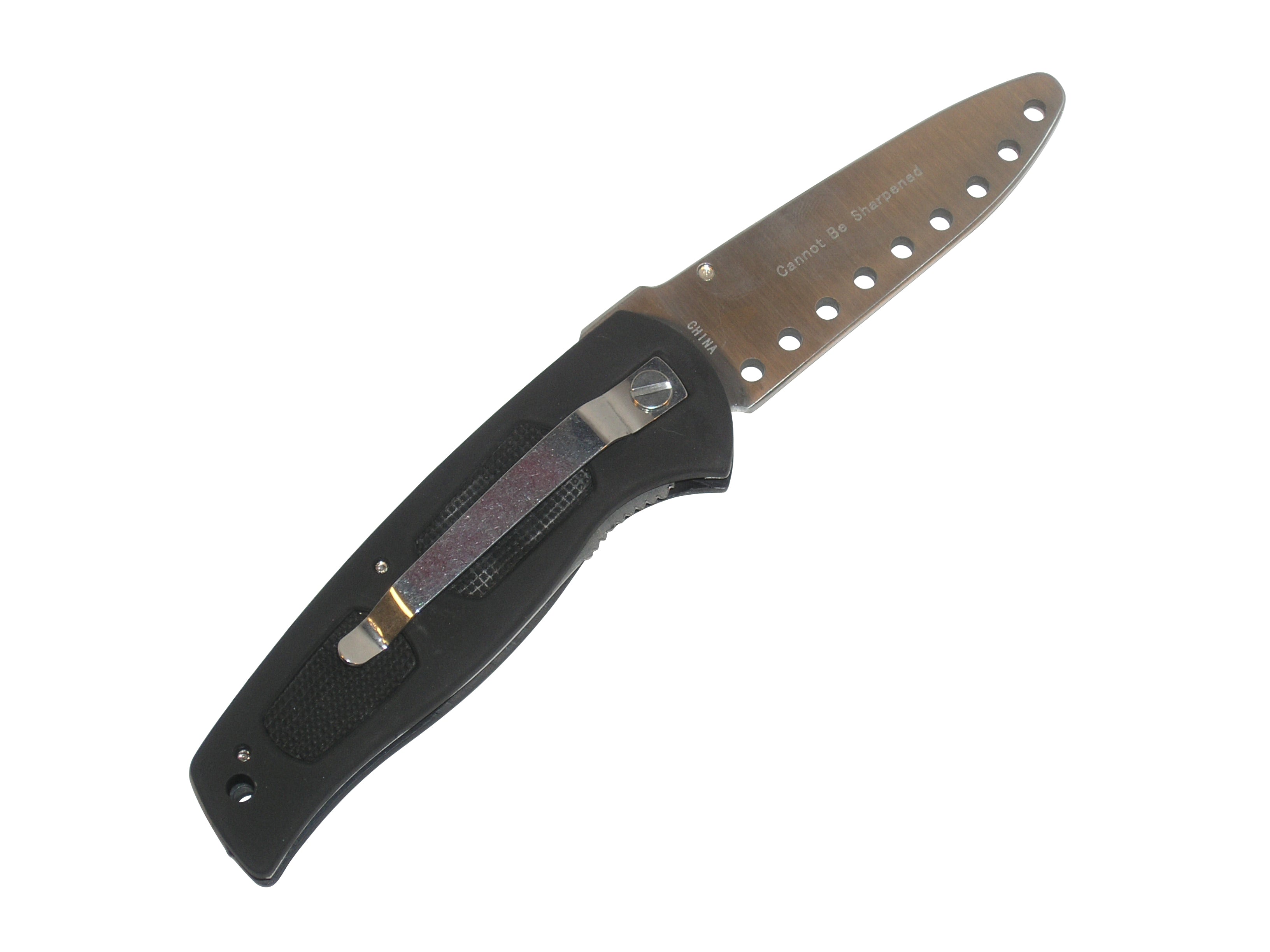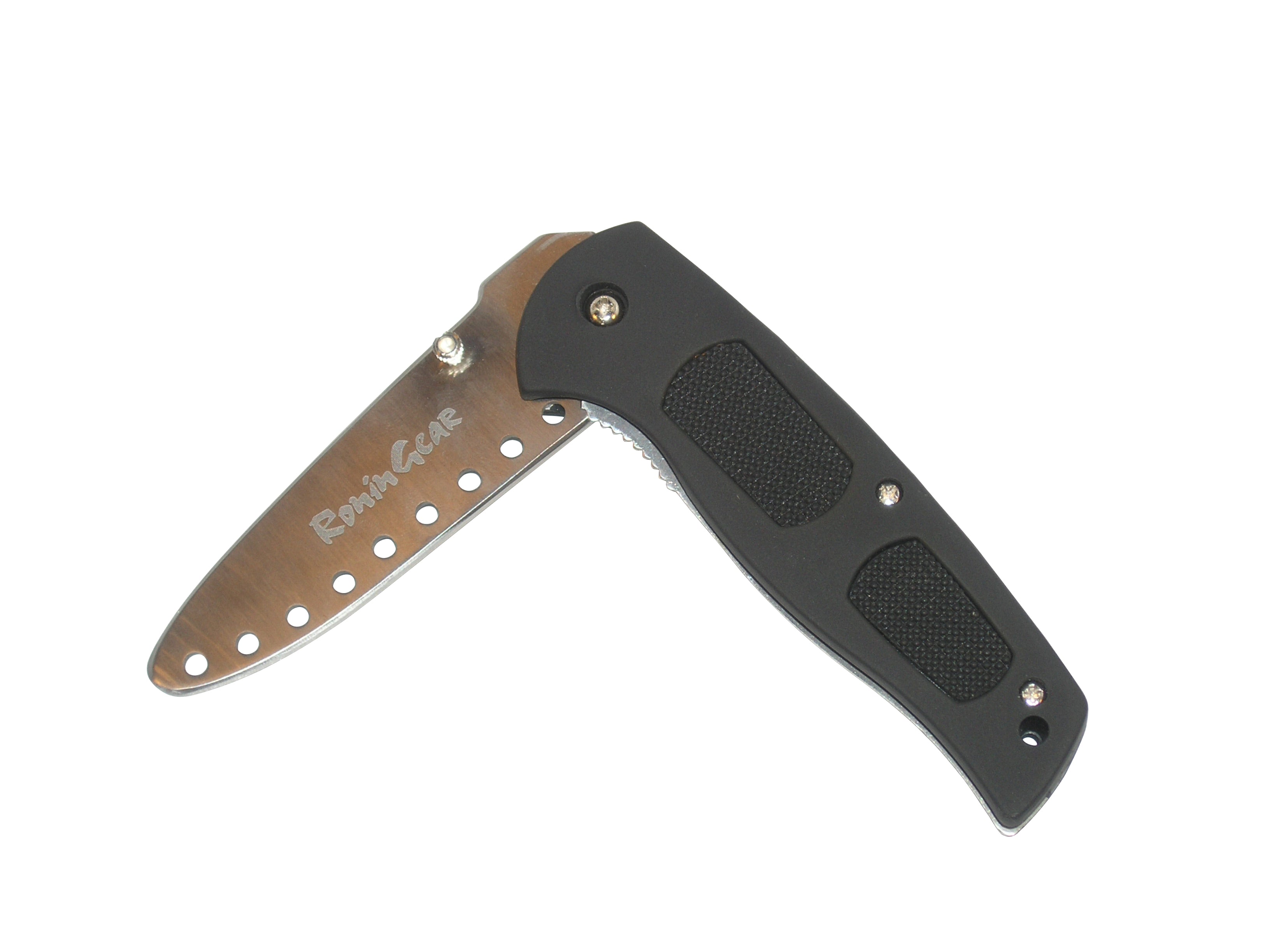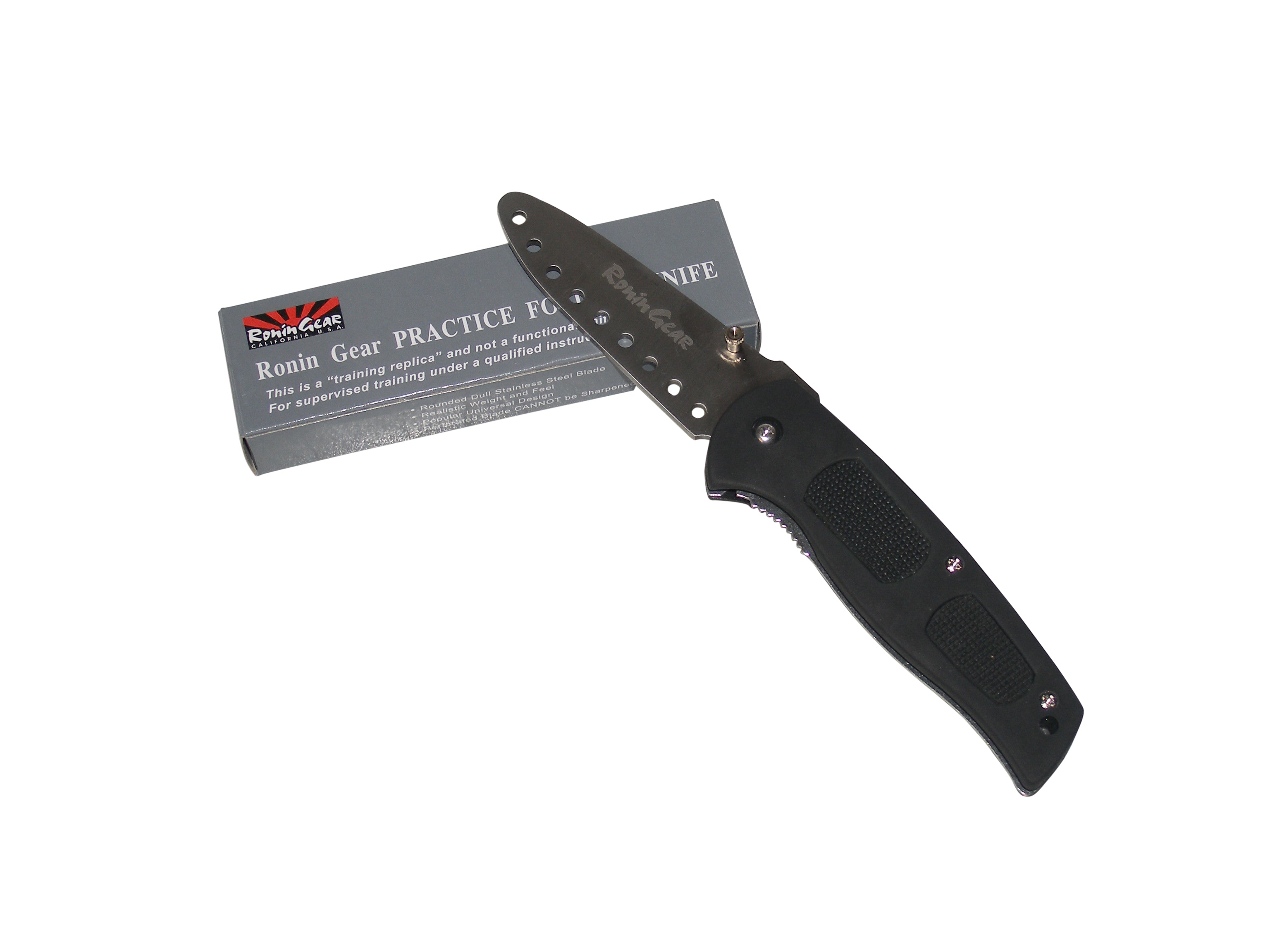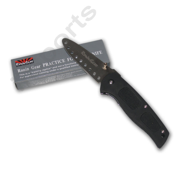 Designed to make your training more effective by adding the psychological aspect of handling an assault with a realistic folding blade! Ronin Gear's Practice Folding Knife features a drilled 3.4" stainless steel rounded & dulled blade. Features a one-hand thumb lug; liner lock and composite handles with textured rubber inserts. 4.75" closed; 8" open. This enhances your training by making it more 'reality based'; something most plastic or wooden knives can't provide. With this knife you can practice disarming techniques and create different scenarios of attack. Perfect for martial arts schools; police departments and military training. Has a sleek; attractive design with rubber inlays in the handle for better retention; and a belt clip for easy access. Black.