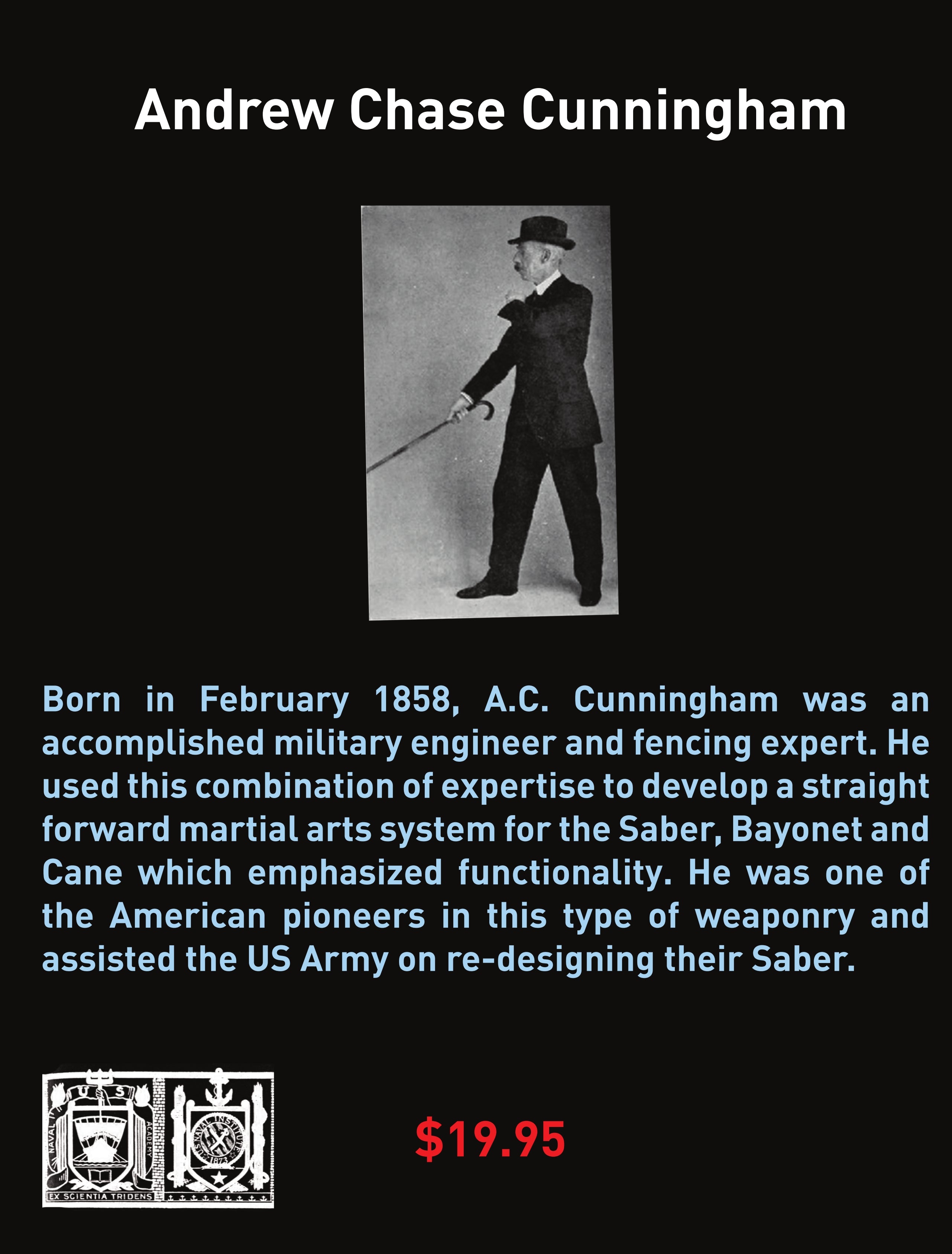 This is the scientific study of A.C. Cunningham's original classic work on the Saber, Bayonet and Cane and includes his complete text with pictures. Born in February 1858, A.C. Cunningham was an accomplished military engineer and fencing expert. He used this combination of expertise to develop a straight forward martial arts system for the Saber, Bayonet and Cane which emphasized functionality. He was one of the American pioneers in this type of weaponry and assisted the US Army on re-designing their Saber. 74 pages. 8.5 x 11.