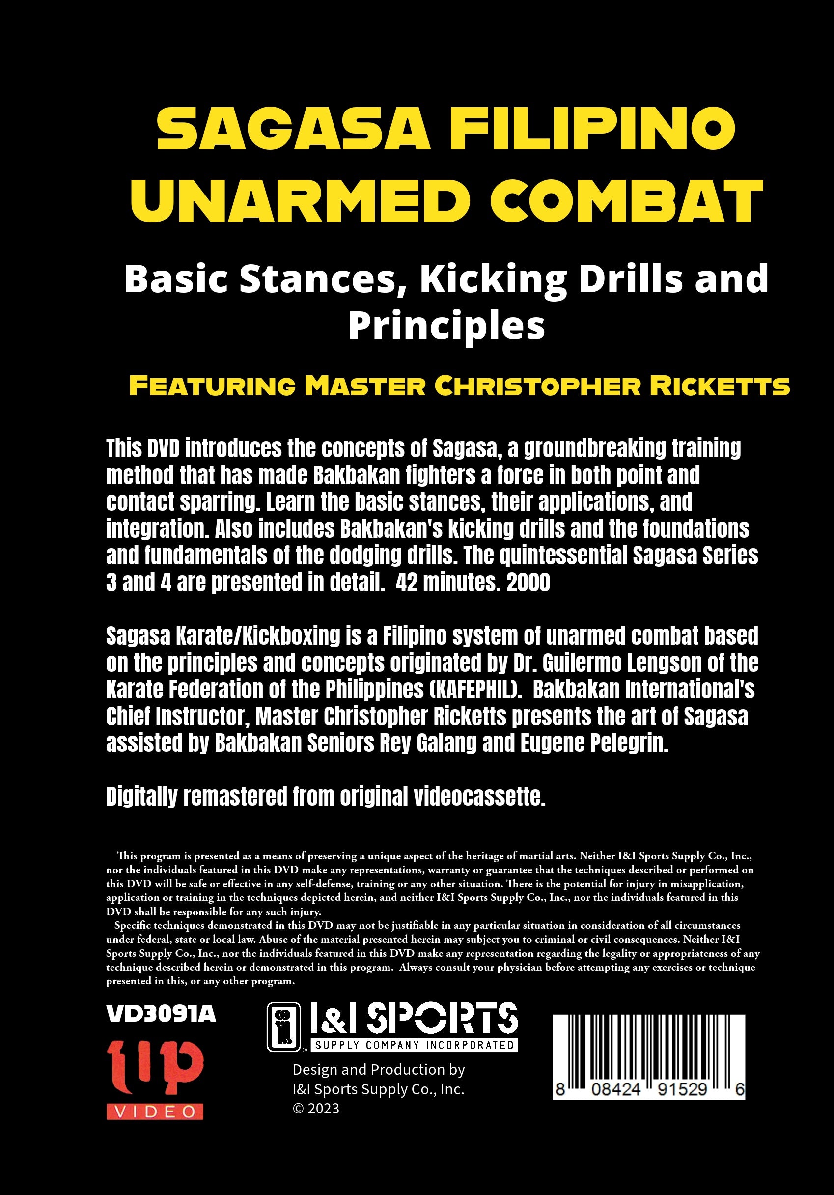 This DVD introduces the concepts of Sagasa, a groundbreaking training method that has made Bakbakan fighters a force in both point and contact sparring. Learn the basic stances, their applications, and integration. Also includes Bakbakan's kicking drills and the foundations and fundamentals of the dodging drills. The quintessential Sagasa Series 3 and 4 are presented in detail. 42 minutes. 2000.