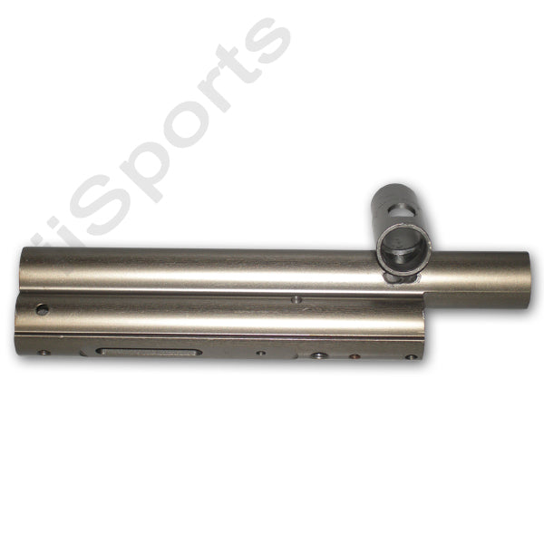 GRAY Genuine Kingman factory replacement body for the older pre-2k Spyder Compact and similar Paintball markers. Gray anodized aluminum crossfeed body (no feed plug). Side cocking design (can easily be converted to rear cocking) completely drilled; tapped and ready to assemble. Fits pre-2000 LARGER hammer; bolt; etc. (NOT INCLUDED). Two rear holes are tapped to hold in the rear velocity adjusting plug. Internals NOT included. No valve; hammer; powertube; barrel or any other parts. Body Only. Measures 8.75 inch long. 1 inch wide. Threaded for Spyder compatible barrels. Build your own Spyder!