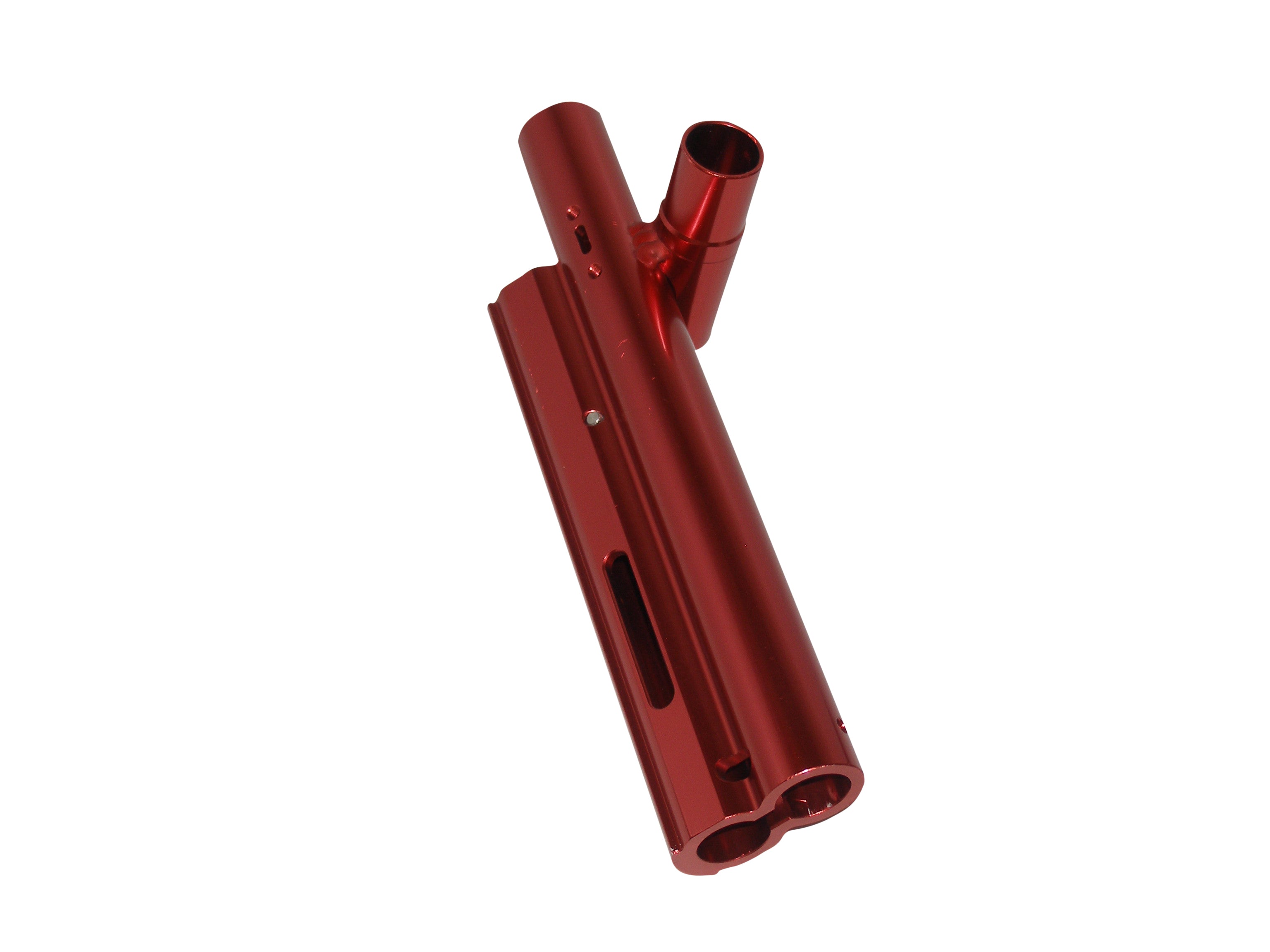 Auction is for a genuine Kingman factory replacement body for the Spyder TL and similar Paintball markers. Red anodized aluminum crossfeed body (no feed plug). Rear cocking design completely drilled, tapped and ready to assemble. Fits 2000+ smaller hammer, bolt, etc. (NOT INCLUDED). Uses oval rear retaining pin which holds all internals in place. Internals NOT included. No valve, hammer, powertube, barrel or any other parts. Body Only. Measures 9 inch long. 1 inch wide. Threaded for Spyder compatible barrels. Build your own Spyder!
