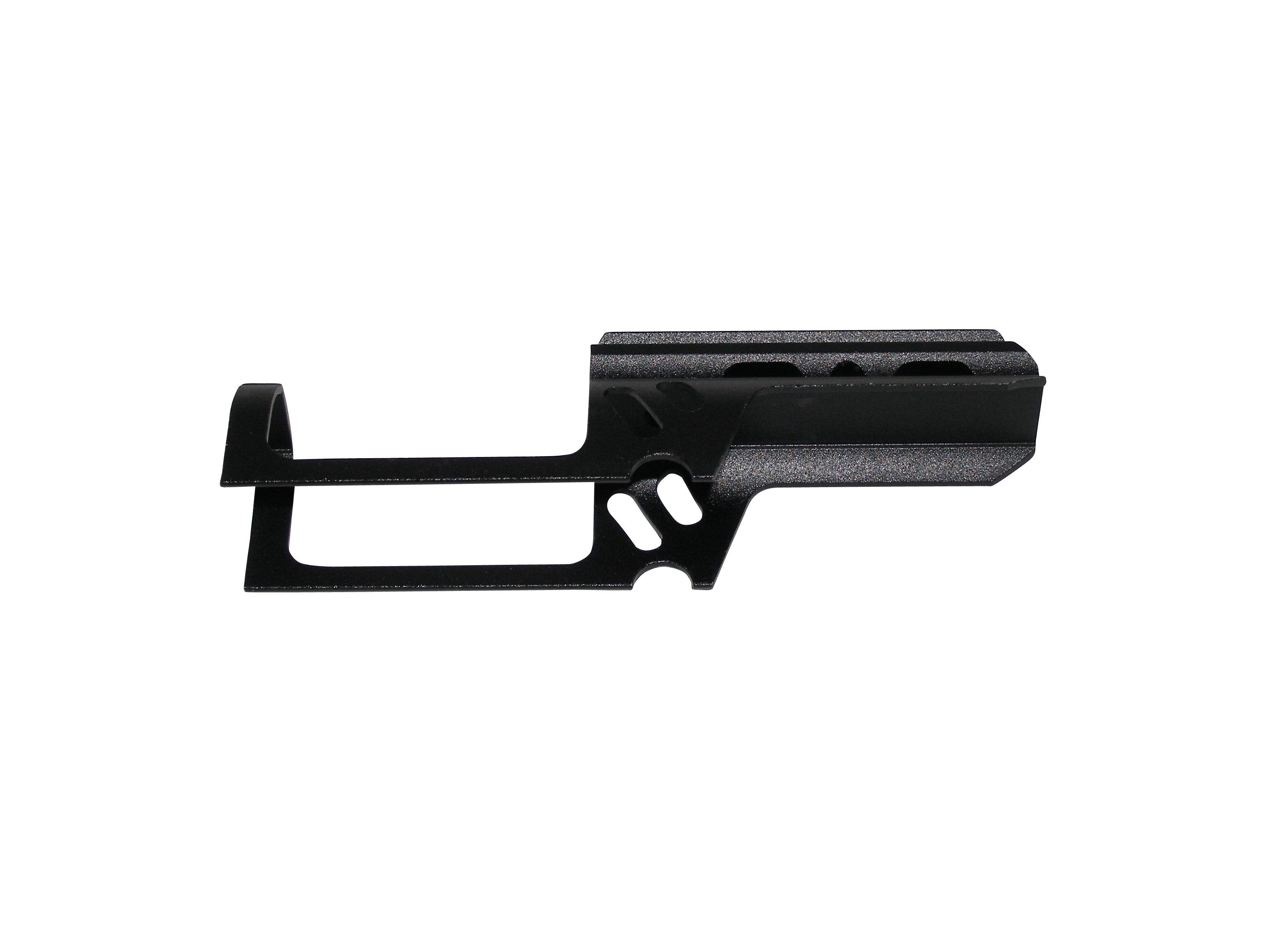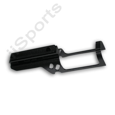 Kingman factory replacement sight rail for the Spyder Xtra; Rodeo or smilar marker. This sight rail includes an integrated beavertail. It may fit on other rear cocking models; but no guarantees. The 3/8in dovetail rail is 'V' notched for line of sight targeting. Constructed of aluminum; anodized Matt Black. No mounting screw included. Overall length is 5 « inches. 2 inch tall. Weighs 1.3 oz.