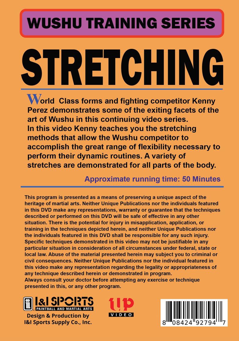 World class forms and fighting competitor Kenny Perez demonstrates some of the exciting facets of the art of Wushu in this continuing tape series. In this video Kenny teaches you the stretching methods that allow the Wushu competitor to accomplish the great range of flexibility necessary to perform their dynamic routines. A variety of stretches are demonstrated for all parts of the body.