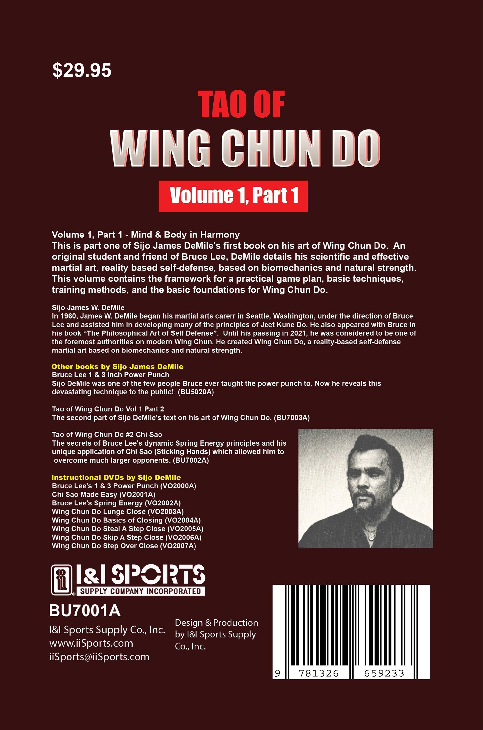 This is part one of Sijo James DeMile's first book on his art of Wing Chun Do. An original student and friend of Bruce Lee, DeMile details his scientific and effective martial art, reality based self-defense, based on biomechanics and natural strength. This volume contains the framework for a practical game plan, basic techniques, training methods, and the basic foundations for Wing Chun Do. 128 pages. 6" x 9".