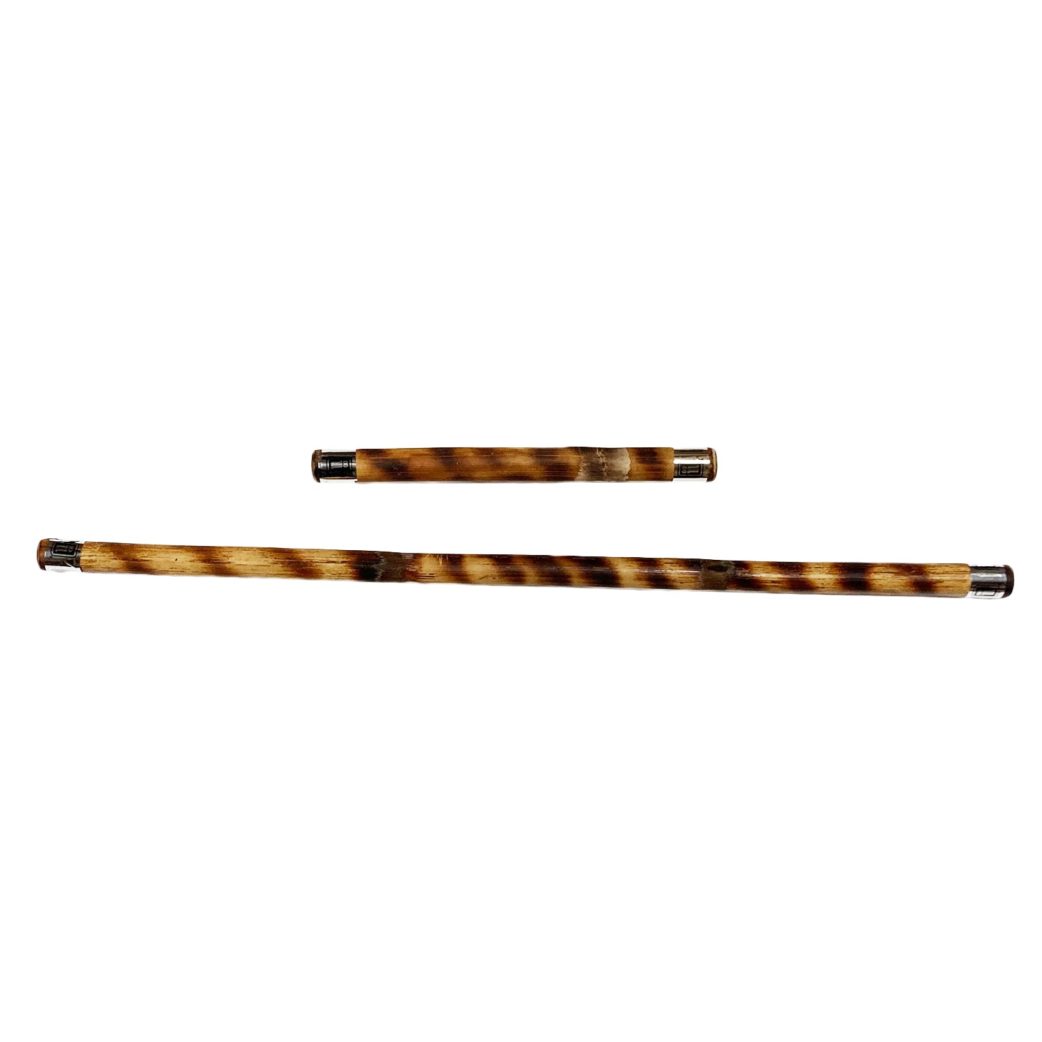 Matched set of a 28 inch long Espada stick and 12 inch Daga. Handcrafted in the USA! Select Indonesian tight grain rattan with skin are fire-hardened and burned in the traditional manner. Ends are beveled and fired and the entire stick is infused with a protectant for added durability. With reflective; silver mylar 'Retina Retention Tape' on each end.1 inch thick.