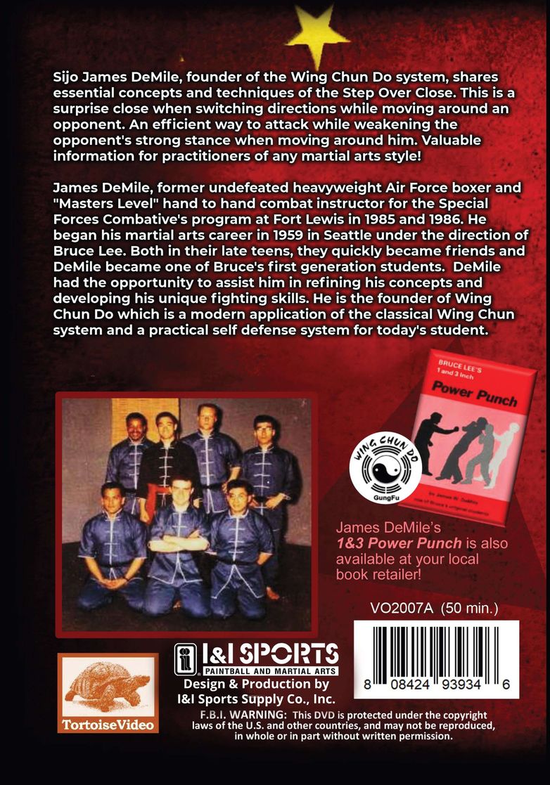 Sijo James DeMile; founder of the Wing Chun Do system, shares essential concepts and techniques of the Skip A Step Close. Very effective against tall or large framed opponents. An excellent close for kickers who want to surprise their opponent or for setting up an opponent from long range. Valuable information for practitioners of any martial arts style! 2003 39 min.