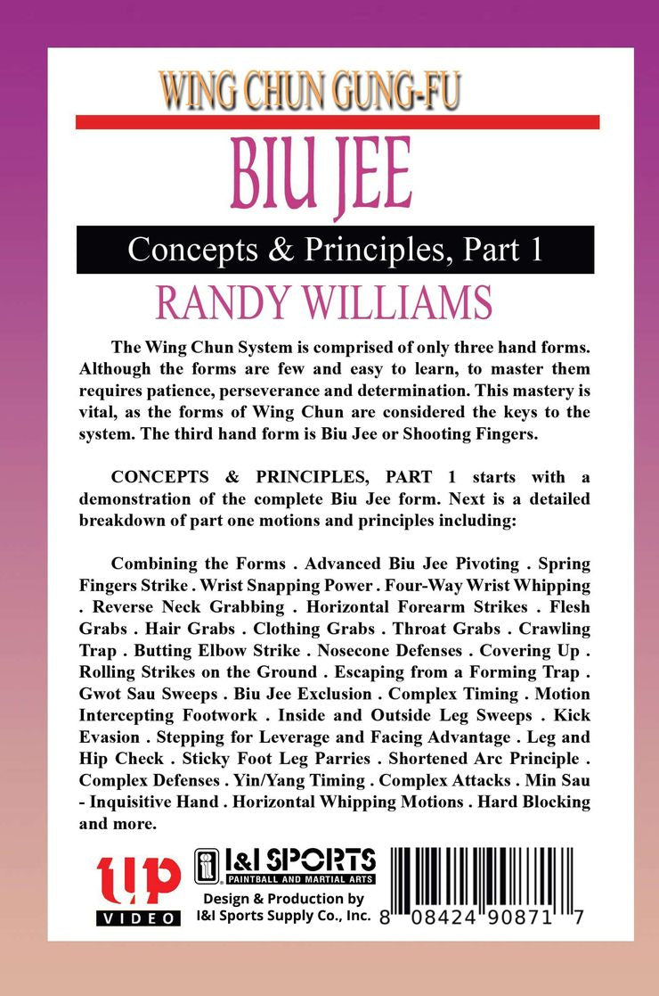 The Wing Chun System is comprised of only three hand forms. Although the forms are few and easy to learn; to master them requires patience; perseverance and determination. This mastery is vital; as the forms of Wing Chun are considered the keys to the system. The third hand form is Biu Jee or Shooting Fingers. CONCEPTS AND PRINCIPLES; PART 1 starts with a demonstration of the complete Biu Jee form. Next is a detailed breakdown of Part One motions and principles including: Combining the Forms; Advanced Biu Jee Pivoting; Spring Fingers Strike; Wrist Snapping Power; Four-Way Wrist Whipping; Horizontal Forearm Strikes; Flesh Grabs; Hair Grabs; Glothnig Grabs; Throat Grabs; Crawling Trap; Butting Elbow Strike; Nosecone Defenses; Covering Up; Rolling Strikes on the Ground; Escaping from a Forming Trap; Grow Sau Sweeps; Biu Jee Exclusion; Complex Timing; Motion Intercepting Footwork; Inside and Outside Leg Sweeps; Kick Evasion; Stepping for Leverage and Facing Advantage; Leg and Hip Check; Sticky Foot Leg Parries; Shortened Arc Principle; Complex Defenses; Ying/Yang Timing; Complex Attacks; Mun Sau--Inquisitive Hand; Horizontal Whipping Motions; Hard Blocking and more!