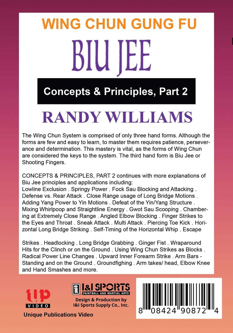 The Wing Chun System is comprised of only three hand forms. Although the forms are few and easy to learn; to master them requires patience; perseverance and determination. This mastery is vital; as the forms of Wing Chun are considered the keys to the system. The third hand form is Biu Jee or Shooting Fingers. CONCEPTS AND PRINCIPLES; PART 2 continues with more explanations of the Biu Jee principles and applications including: Lowline Exclusion; Springy Power; Fock Sau Blocking and Attacking; Defense vs. Rear Attack; Close Range Usage of Long Bridge Motions; Adding Yang Power to Yin Motions; Defeat of the Yin/Yang structure; Mixing Whirlpool and Straightline Energy; Gwot Sau Scooping; Chambering at Extremely Close Range; Angled Elbow Blocking; Finger Strikes to the Eyes and Throat; Sneak Attack; Multi Attack; Piercing Toe Kick; Horizontral Long Bridge Striking; Self-Timing of the Horizontal Whip; Escape from a Headlock; Radical Line Change vs. Mutliple Opponents; Iron Palm Strikes; Headlocking; Long Bridge Grabbing; Ginger Fist; Wraparound Hits for the Clinch or on the ground. Using Wing Chun Strikes as Blocks; Radical Power Line Changes; Upward Inner Forearm Strike; Arm Bars--Standing and on the Ground; Groundfighting; Arm Takes/Head; Elbow; Knee and Hand Smashes; and more!