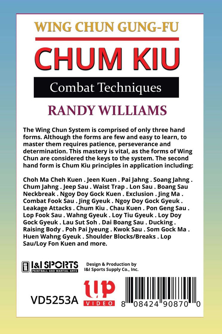 The Wing Chun System is comprised of only three hand forms. Although the forms are few and easy to learn; to master them requires patience; perseverance and determination. This mastery is vital; as the forms of Wing Chun are considered the keys to the system. The second hand form is Chum Kiu or Seeking the Bridge. COMBAT TECHNIQUES demonstrates Combat Sticky Hand engagements highlighting Chum Kiu principles in application including: Choh Man Cheh Kuen; Jeen Kuen; Pai; Jahng; Soang Jahng; Chum Jahng; Jeep Sau; Waist Trap; Lon Sau; Boang Sau Neckbreak; Ngoy Doy Gock Kuen; Jing Ma; Combat Fook Sau; Jing Gyeuk; Ngoy Tiu Gyeuk; Ngoy Doy Gock Gyeuk; Leakage Attacks; Chum Kiu; Chau Kuen; Pon Geng Sau; Lop Fook Sau; Wahng Gyeuk; Loy Tiu Gyeuk; Loy Doy Gock Gyeuk; Lau Sut Soh; Dai Boang Sau; Poh Pai Jyeung; Kwok Sau; Som Gock Ma; Huen Wahng Gyeuk; Shoulder Blocks/Breaks; Lop Sau/Loy Fon Kuen and more! When Steven Seagal; Phil Collins or Eric Clapton needed bodyguard protection; they called Wing Chnu master Randy Williams; one of the world's foremost experts on self-defense. Williams; who operates schools in various parts of the world; began training at the age of 13 under George Yau and completed his instruction in the system under world renown master Augustine Fong.