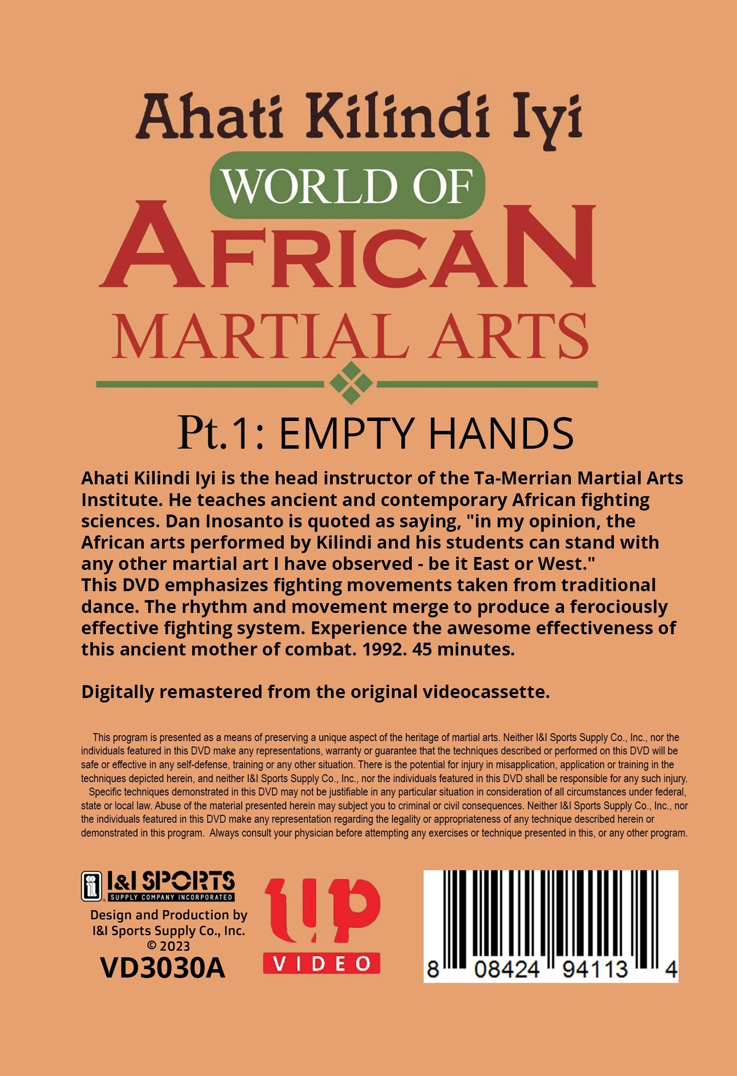 Kilindi Iyi; head instructor of the Ta-Merrian Martial Arts institute, teaches a unique blend of both ancient and contemporary African fighting. In this DVD, Iyi emphasizes forms taken from traditional African dance. Learn concepts like the circle; straight line and sucking power; the use of elbows and knees; sensitivity drill and grappling. 1992. 52 min.