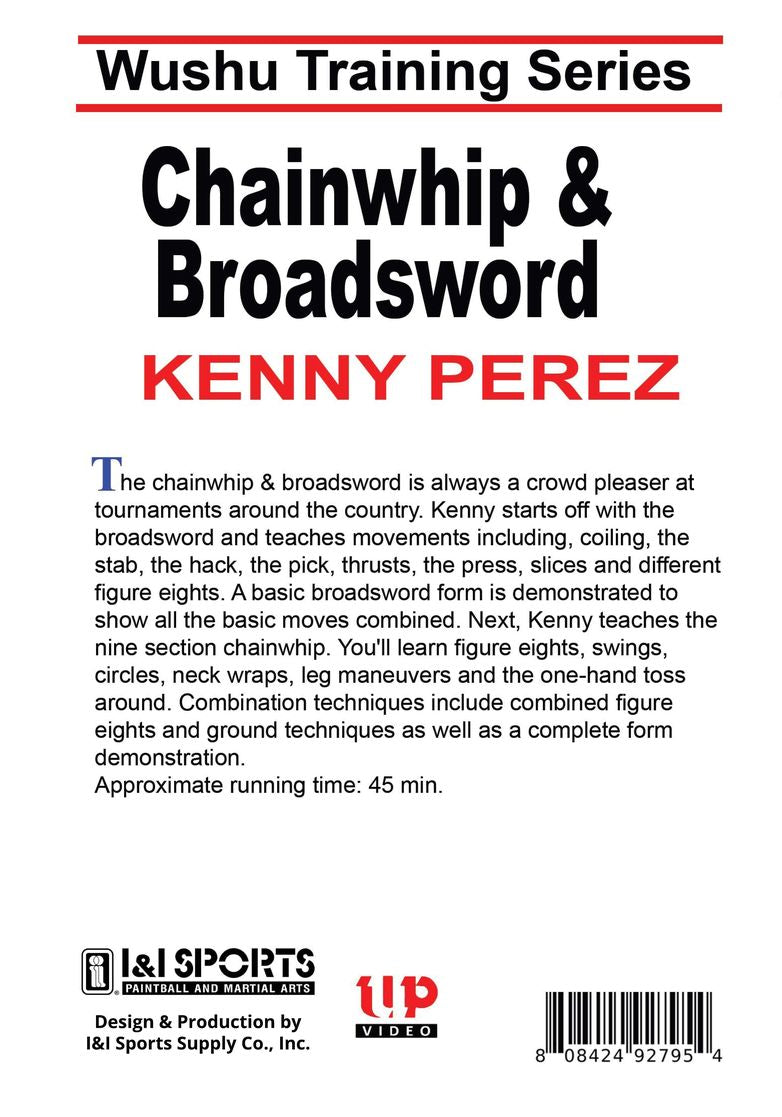 Kenny starts off with the broadsword and teaches movements including; coiling; the stab; the hack; the pick; thrusts; the press; slices and different figure eights. A basic broadsword form is demonstrated. The instruction of the 9-section chainwhip includes figure eights; swings; circles; neck wraps; leg maneuvers and the one-hand toss around. The tape ends with combination techniques and a complete form demonstration.