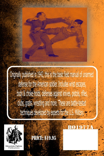 Originally published in 1942, this is the basic field manual of unarmed defense for the American soldier. Includes wrist escapes, body & choke holds, defenses against knives, pistols, rifles, clubs, grabs, wrestling and more. These are battle-tested techniques developed by experts for the U.S. Military. 6" x 9". 315 pages.